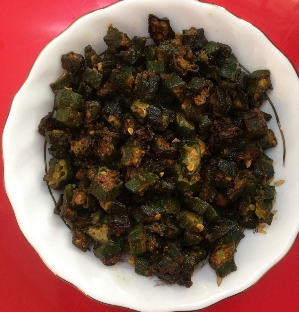 - Add oil in a pan . Then add the chopped okra and sauté for about 20 minutes or untill well cooked.