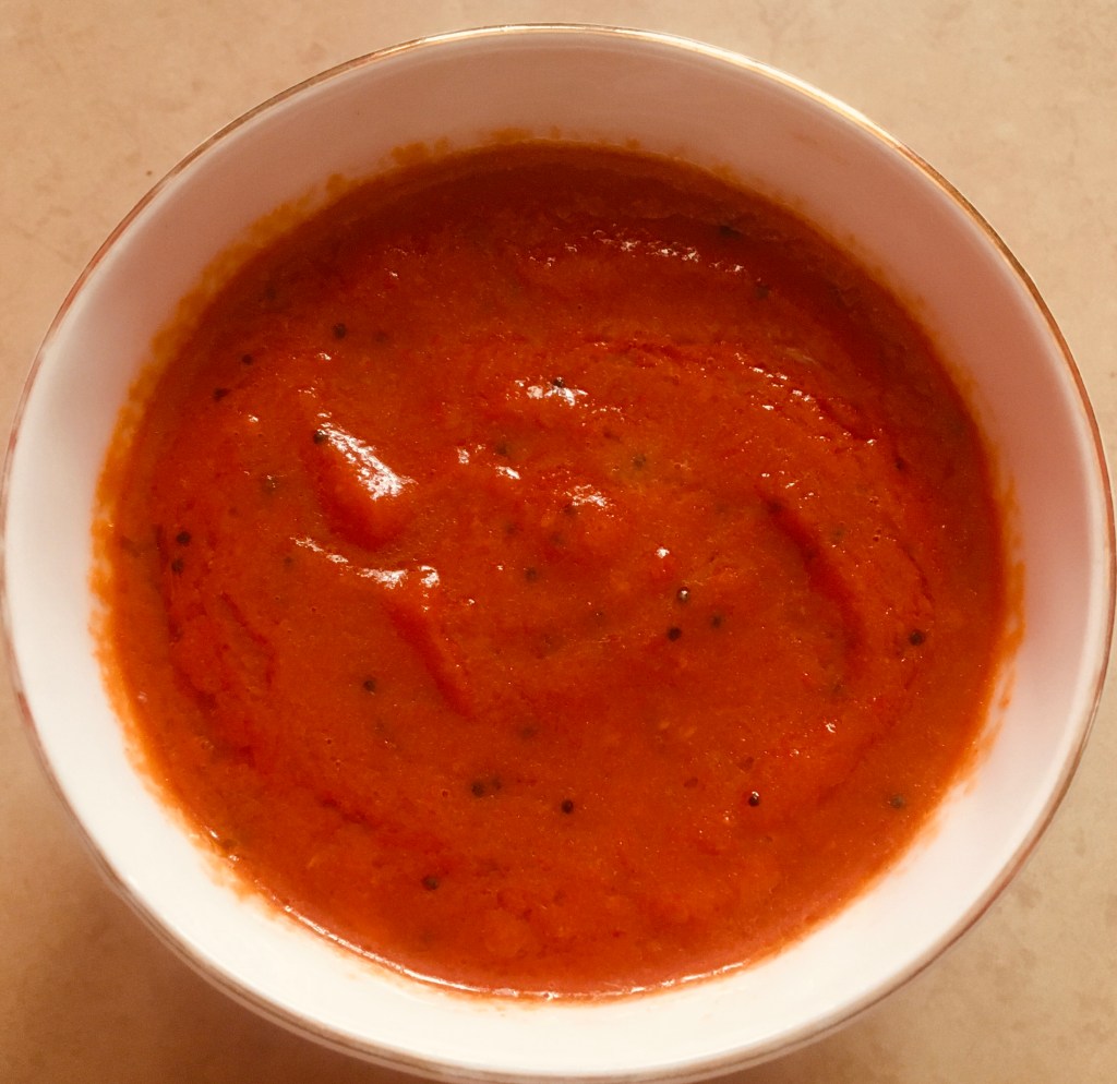 - Heat oil in a pan and add the mustard seeds. Once it starts popping add the chutney and sim for a minute. Turn off gas.